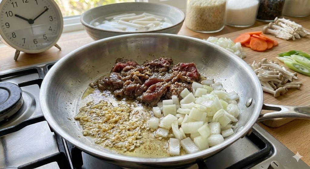 → 소고기 넣고 익힌 후