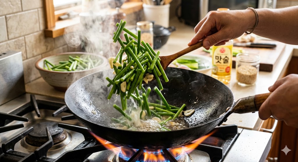 고추장을 넣으면 조금 더 진한 밥반찬 느낌이 나고, 굴소스를 살짝 넣으면 감칠맛이 더 살아납니다. 다만 너무 많이 넣으면 마늘종의 깔끔한 맛이 죽을 수 있어 소량만 넣는 것이 좋습니다.