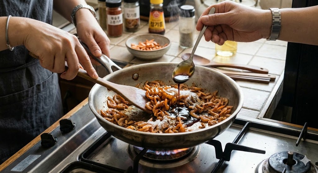 5. 건새우와 양념 넣기