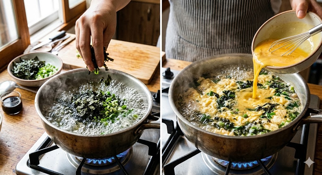 김국을 맛있게 만드는 핵심은 복잡한 재료가 아니라 조리 순서입니다.