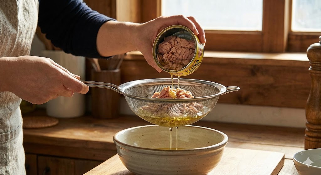 - 참치캔은 체에 밭쳐 기름을 빼주세요.