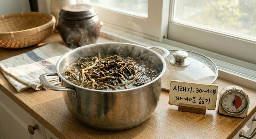 - 시래기: 30~40분 (줄기 부드러워질 때까지)