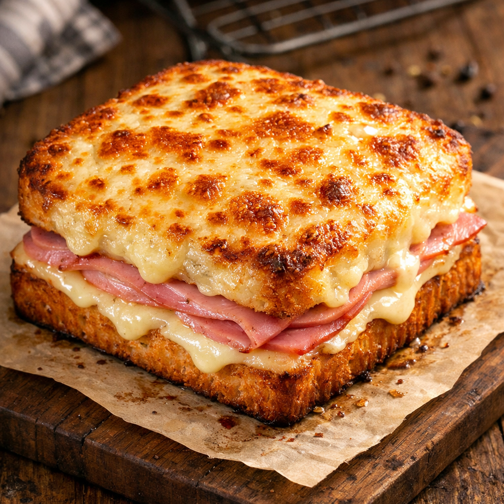 크로크무슈는 프랑스어로 ‘바삭하게 먹는 신사’라는 뜻으로, 바삭한 빵 사이에 햄과 치즈를 넣고 오븐이나 팬에 구워 만든 따뜻한 샌드위치입니다. 베샤멜 소스를 더해 풍미를 끌어올리는 것이 핵심 포인트죠!