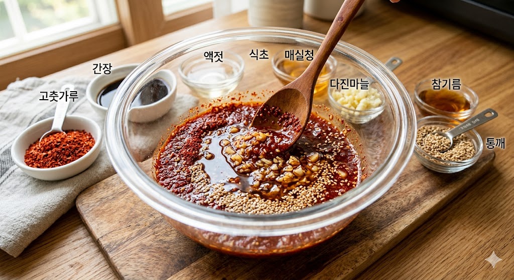 - 고춧가루 대신 고추장 0.5큰술