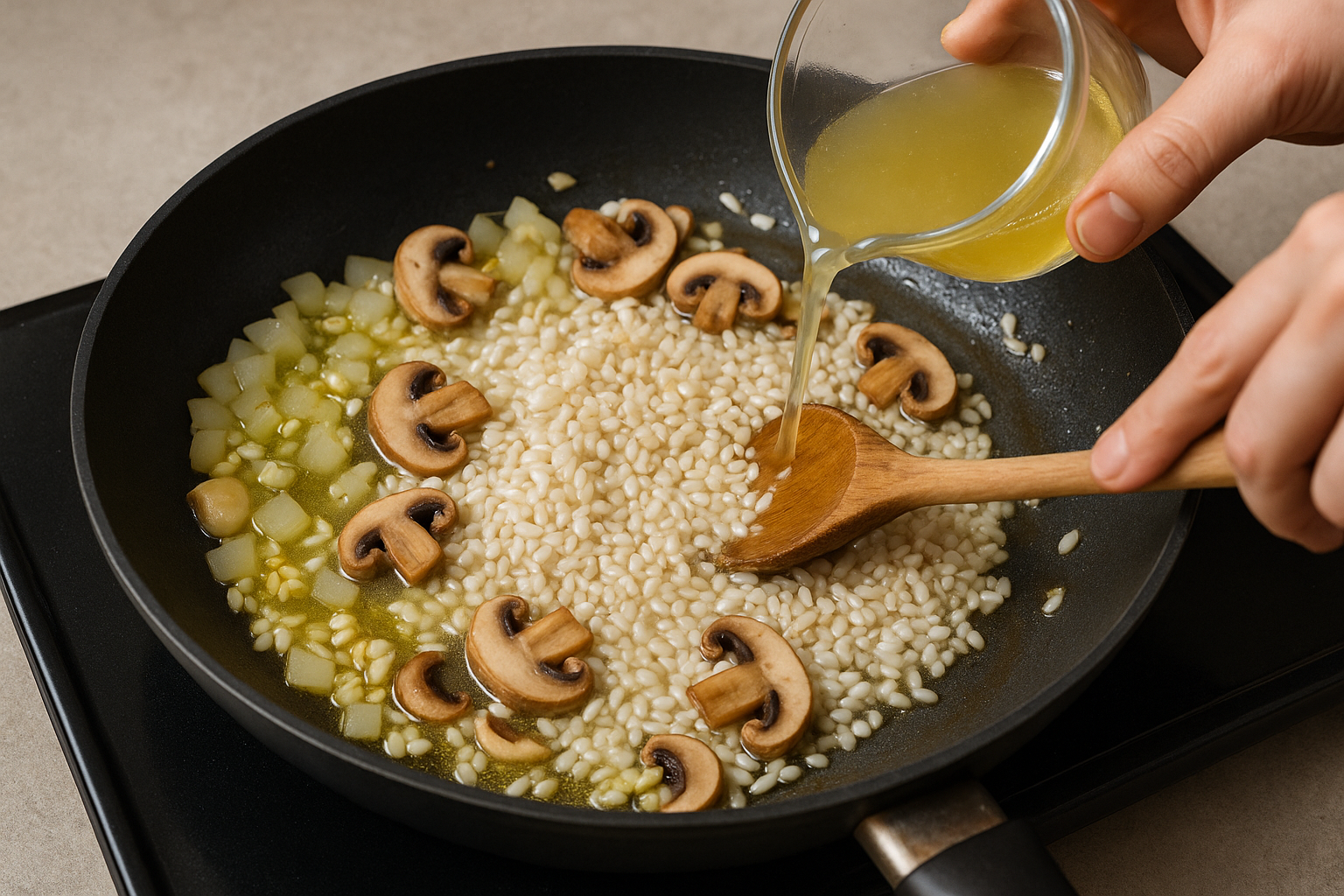 • 쌀은 절대 씻지 마세요: 전분이 리조또 특유의 크리미함을 만듭니다.