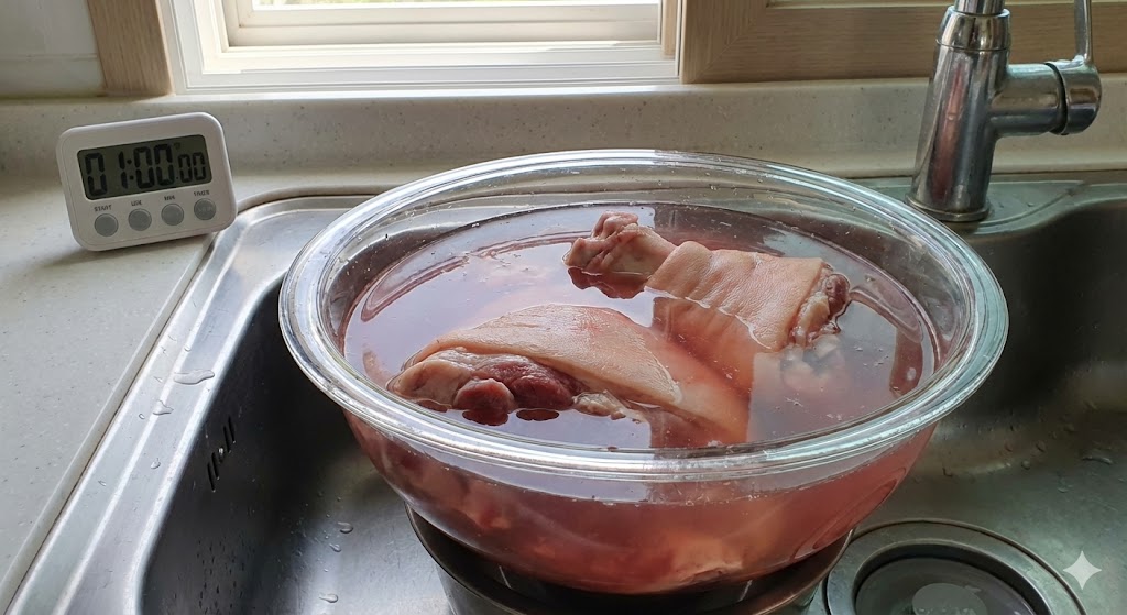 💡Tip: 족발 삶는 동안 커피믹스를 1봉지 넣어주면 잡내 제거와 색감이 더 좋아져요!