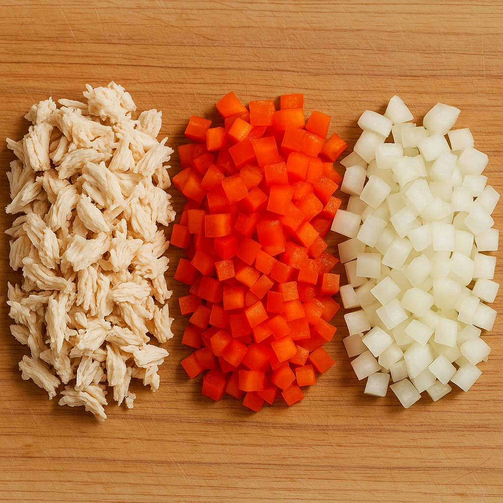 - 치킨 또는 닭가슴살(구워서 결대로 찢기 or 시판 구운 치킨 활용)