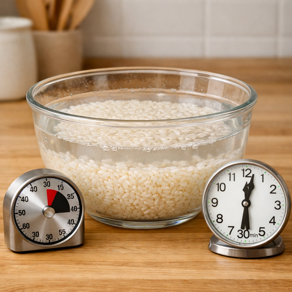 쌀은 30분 정도 불려주세요. 그래야 밥알이 더 탱글탱글~