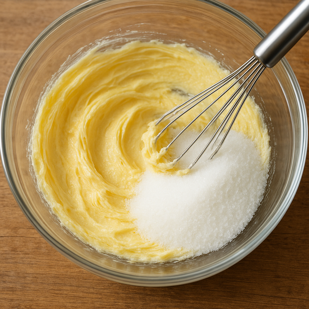 실온 버터를 부드럽게 풀고 설탕을 넣어 윤기 날 때까지 섞기
