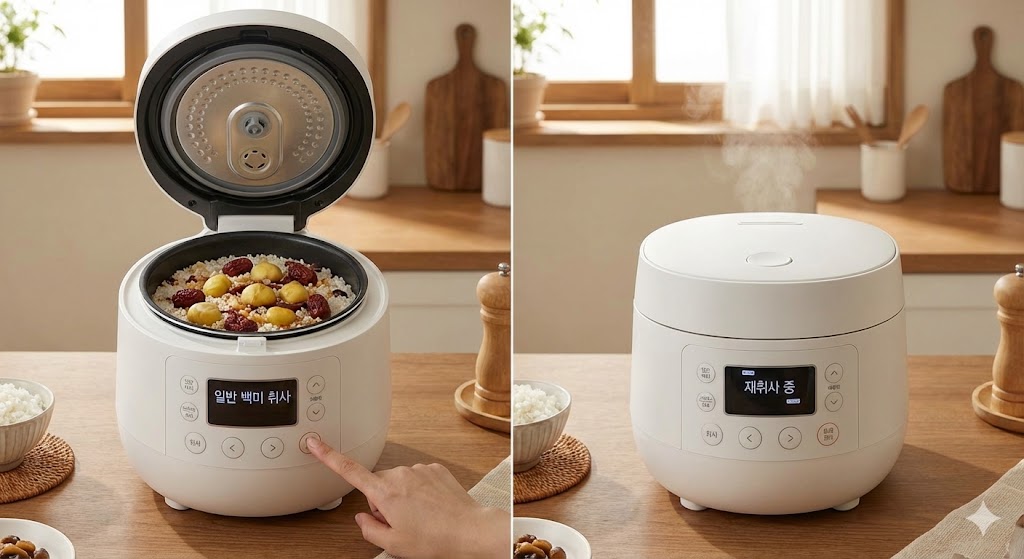 한 번 취사가 끝나면 한 번 더 재취사(또는 보온 30분) 해주면 쫀득해져요 😊