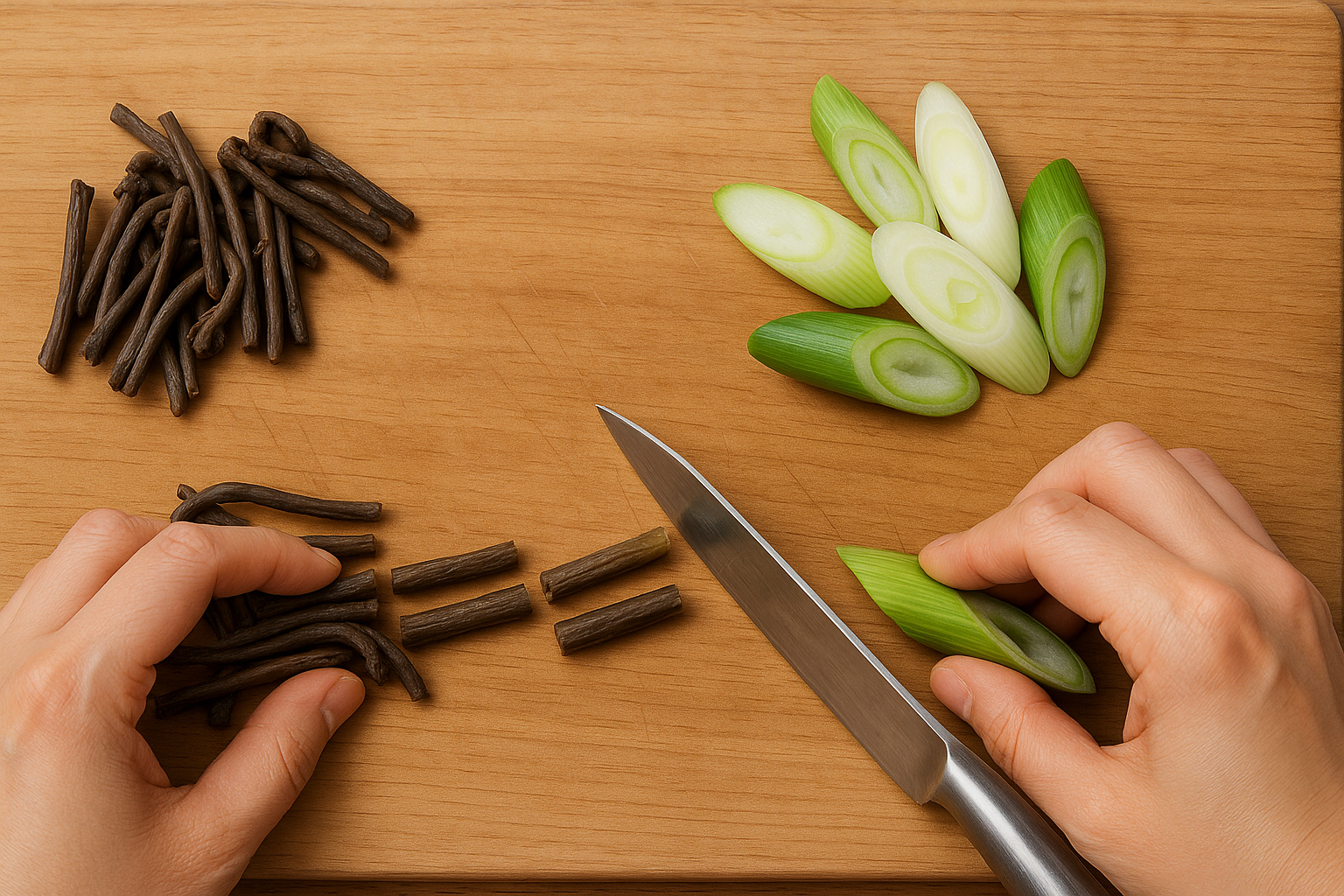 • 고사리는 5cm 길이로 썰고, 대파는 어슷 썰어주세요.