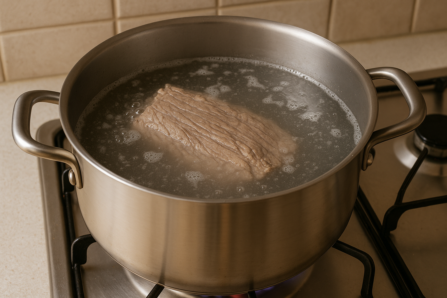 소고기 삶을 때 양파, 대파 뿌리, 통후추 등을 함께 넣어 육수를 더 깊게 우려보세요.