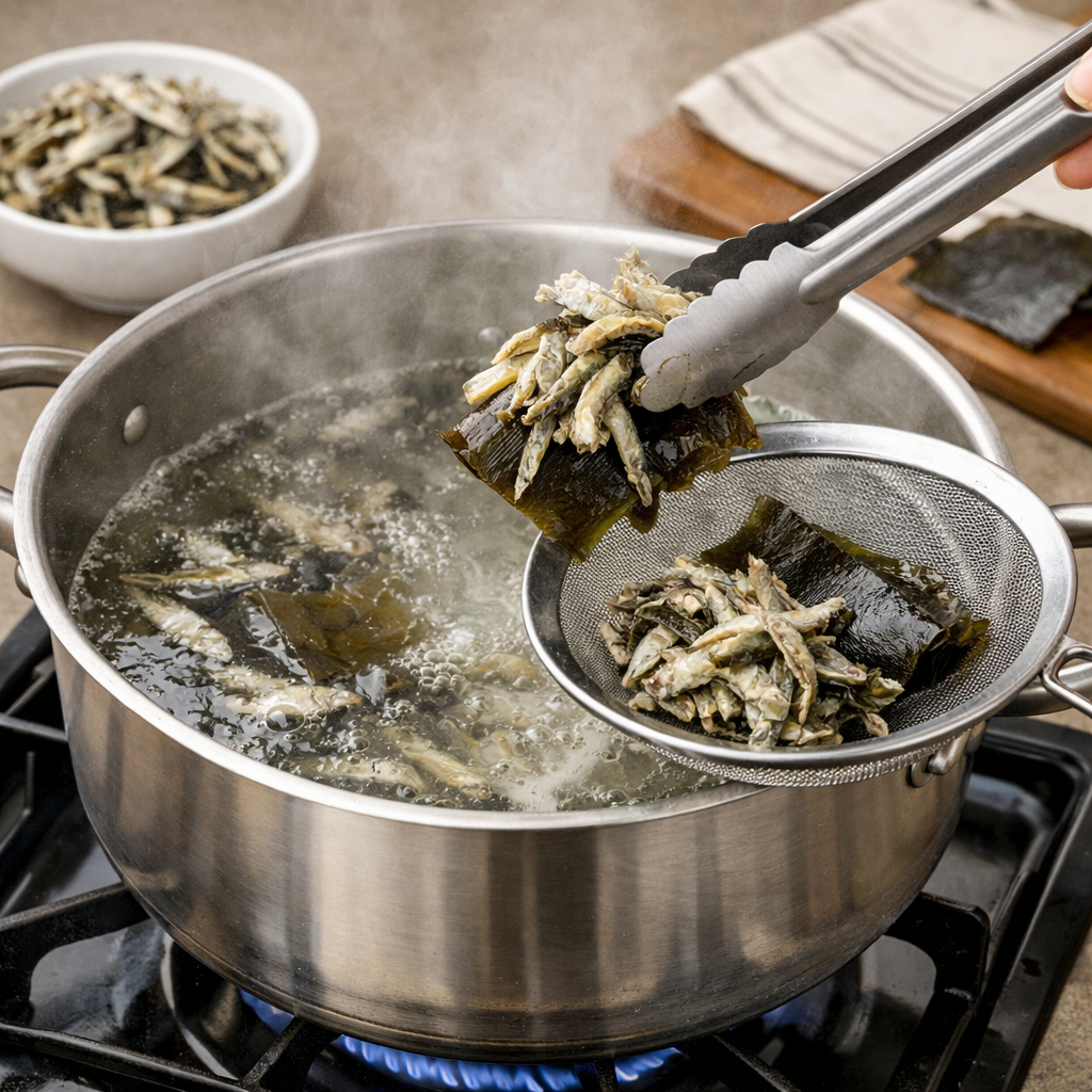 📌 Tip: 시판 멸치육수팩 사용해도 간편하게 맛을 낼 수 있어요.