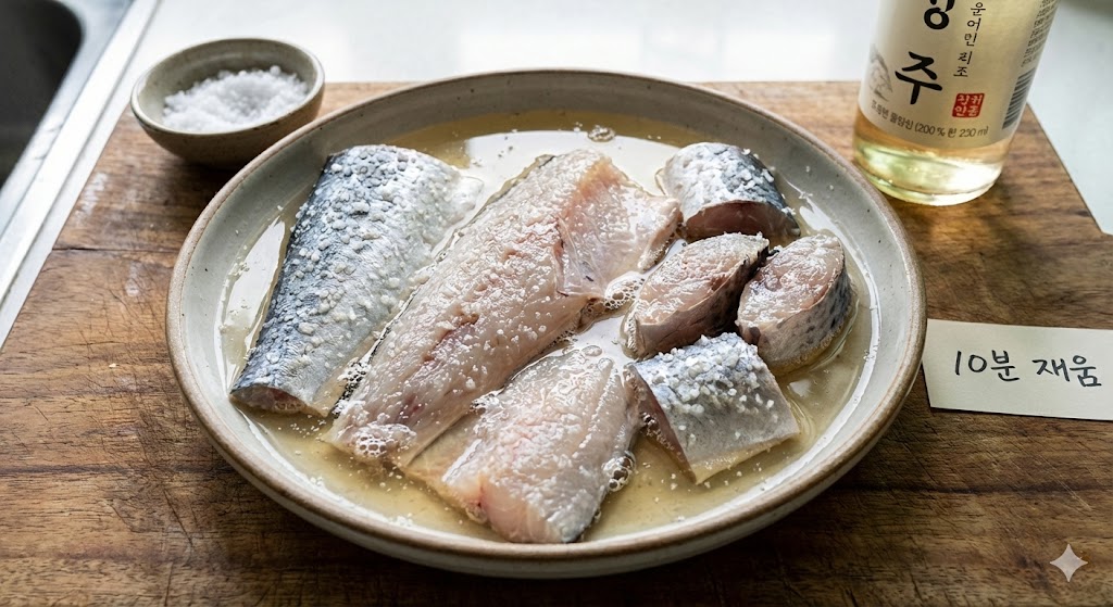 1. 소금+청주 또는 맛술에 10분간 재우기
