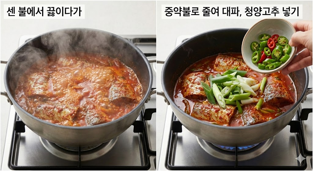 국물 졸아들면 대파·청양고추 넣고 마무리! ✨