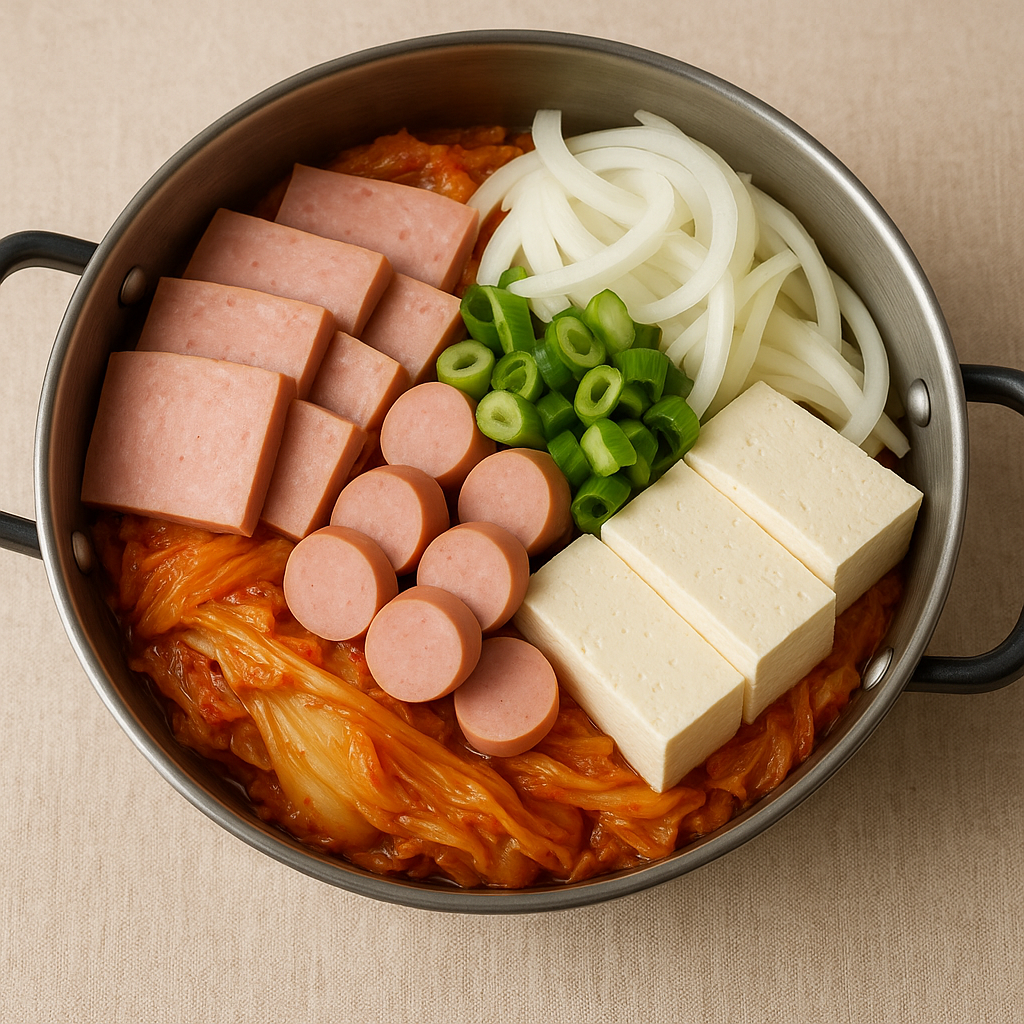 부대찌개는 햄·소시지·김치·고추장 육수가 어우러진 대한민국 대표 찌개 요리입니다.