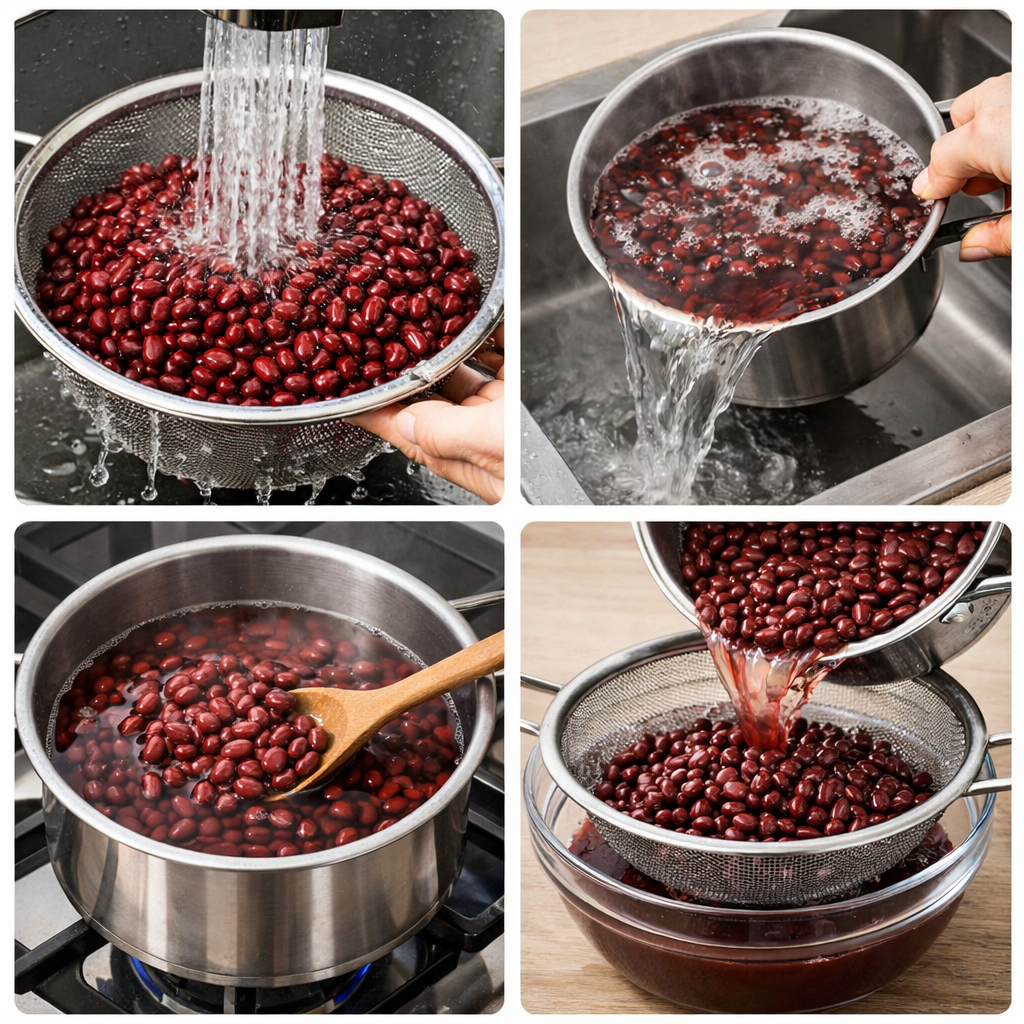 - 팥은 흐르는 물에 깨끗이 씻어 1차 끓이기 → 끓기 시작하면 물을 버리고 새 물로 교체