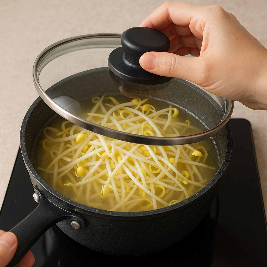 3️⃣ 콩나물 넣고 센불로 빠르게!