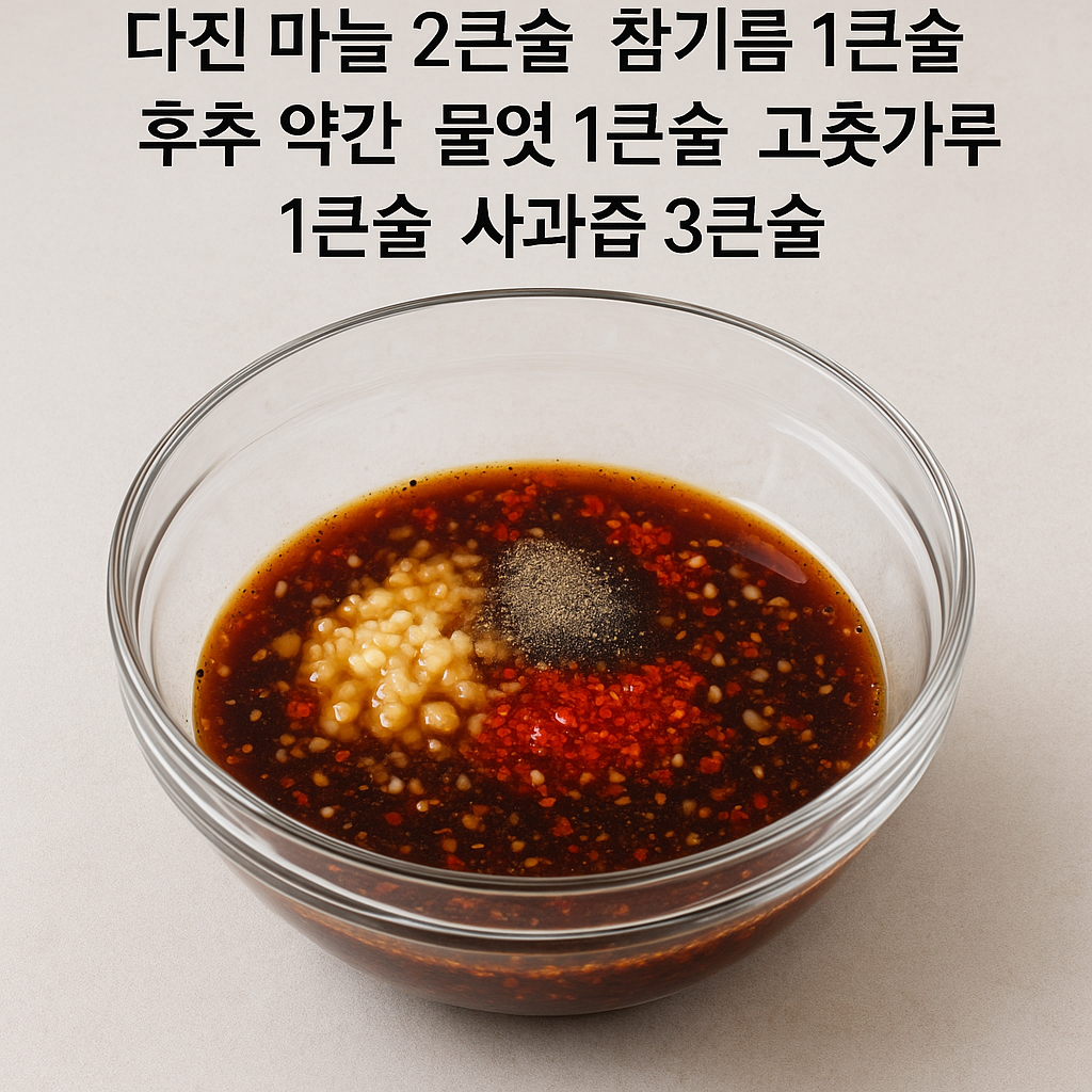 - 배즙 또는 사과즙 3큰술 (육질 부드럽게!)