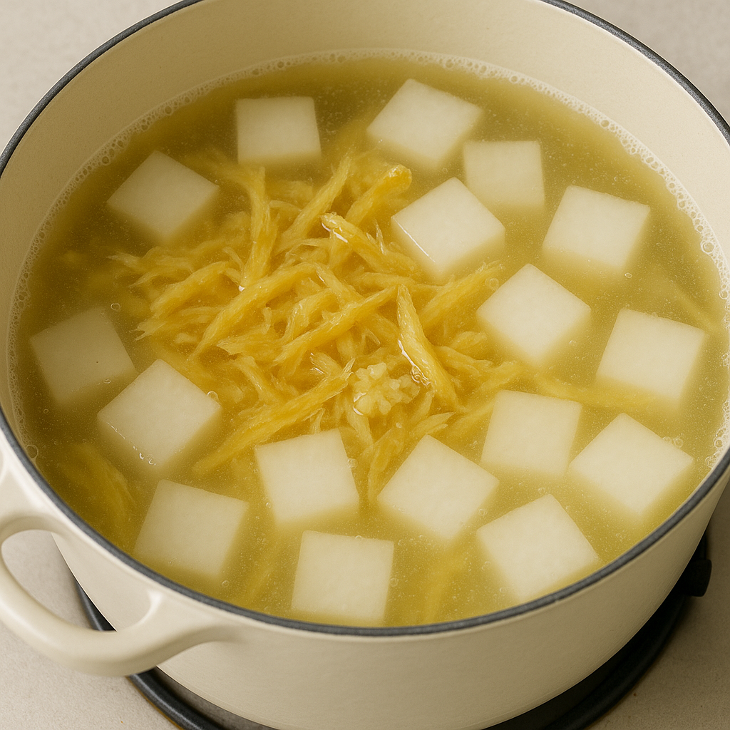 👉 생략해도 되지만, 무를 넣으면 국물 맛이 훨씬 시원해져요.