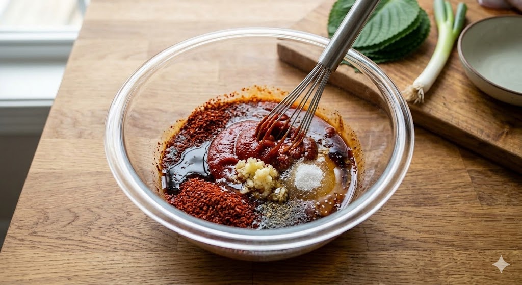 식당 맛을 내려면 고추장 + 고춧가루 비율이 중요합니다.