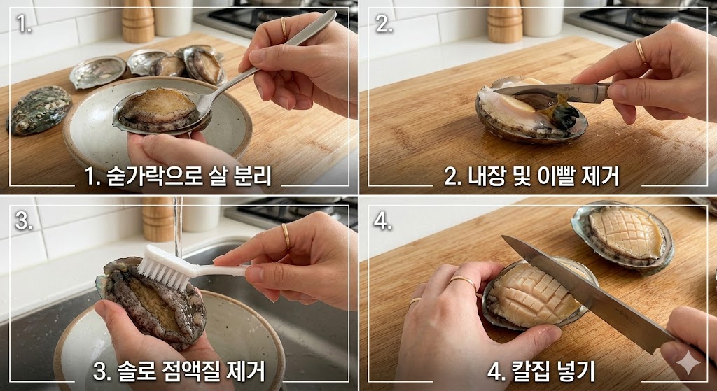 🔪 STEP 1. 전복 손질 방법 (비린내 없이 깔끔하게)